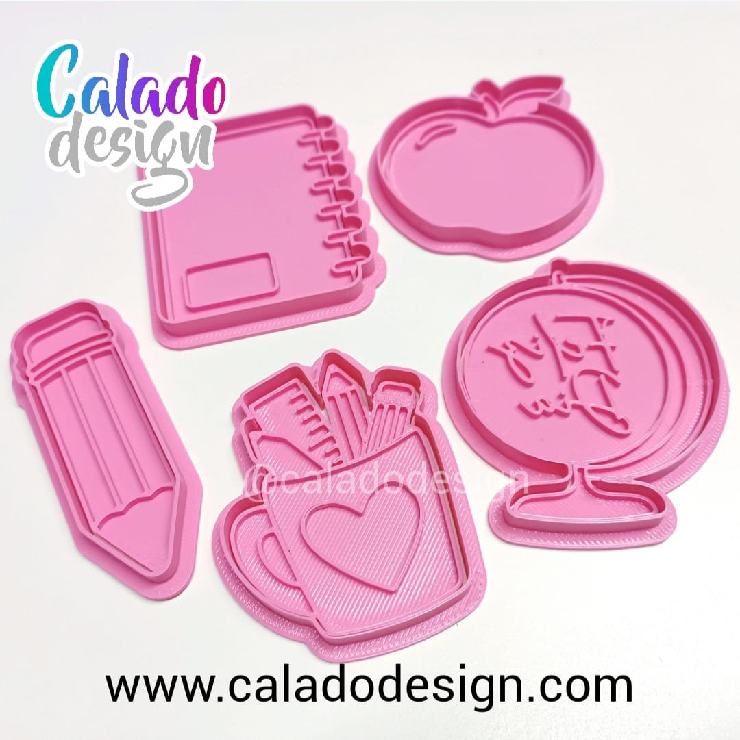 Modelo | Kit x 5 unid (1 de cada modelo), Cuaderno, Lapiz, Globo terraqueo "feliz dia", Manzana, Lapicero corazón |
